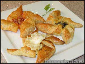 el hojaldre en cuadrados de unos 10 cm. de lado y